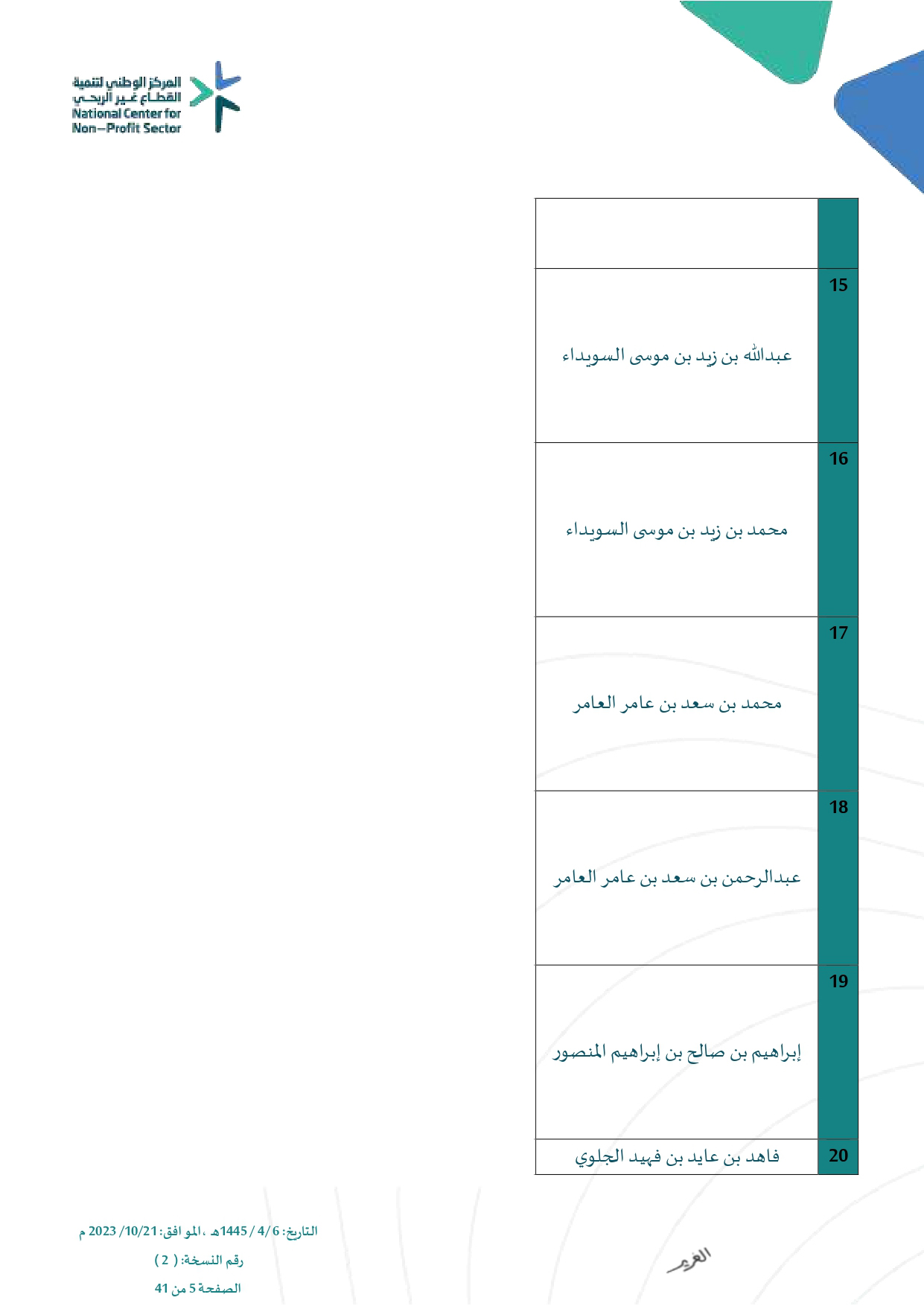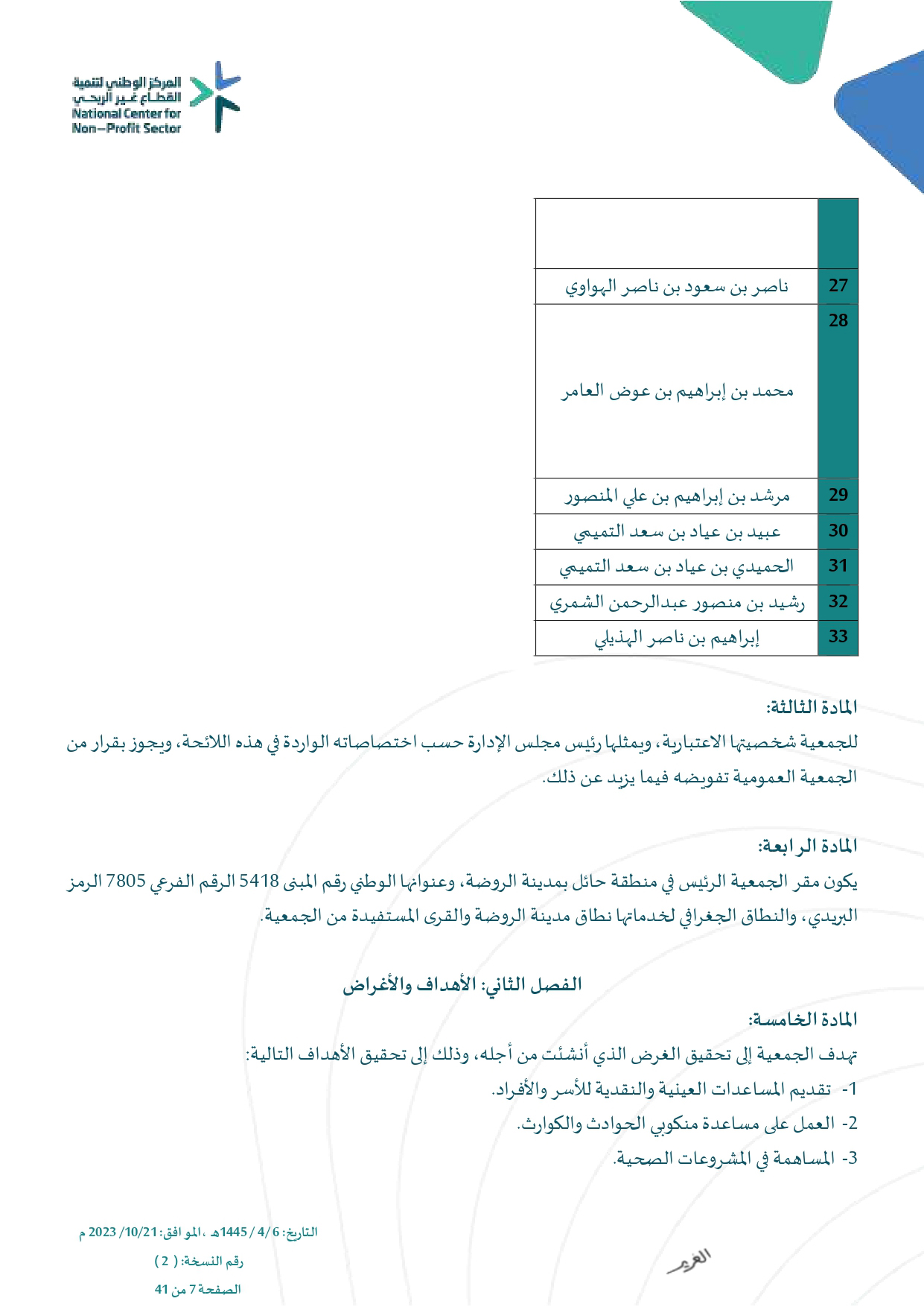 17/04/2026 مسجلة لدى وزارة الموارد البشرية والتنمية الاجتماعية برقم (93) 0162630996 - 0162631253 - 0553905335