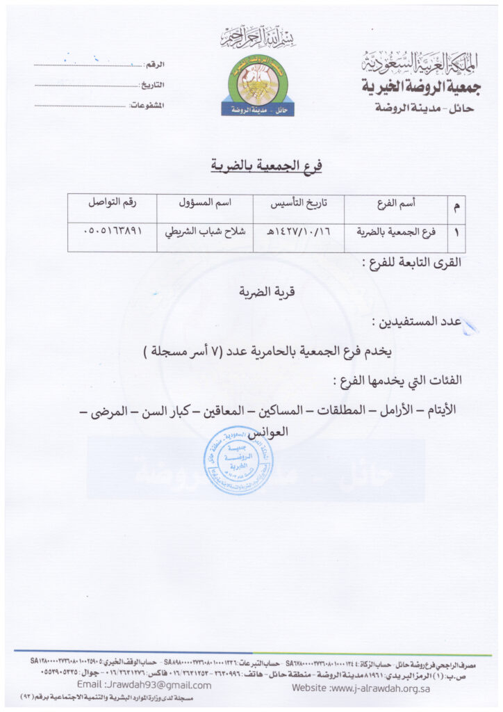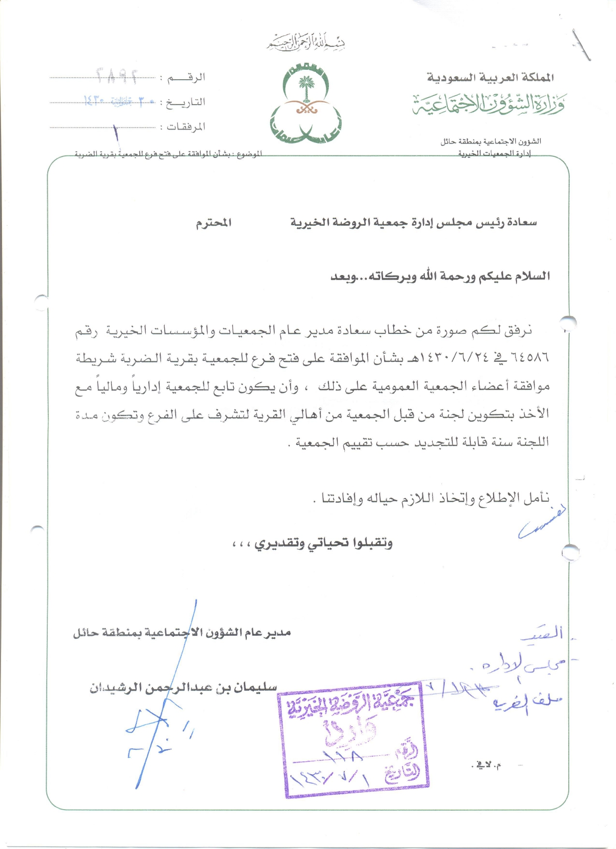 مسجلة لدى وزارة الموارد البشرية والتنمية الاجتماعية برقم (93)