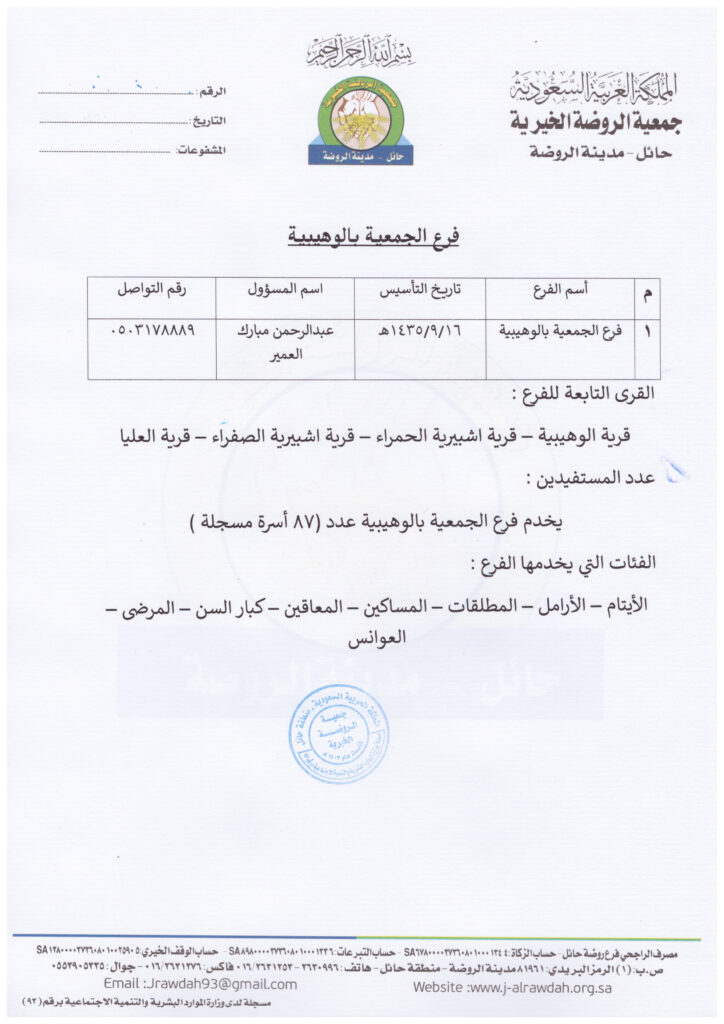 مسجلة لدى وزارة الموارد البشرية والتنمية الاجتماعية برقم (93)